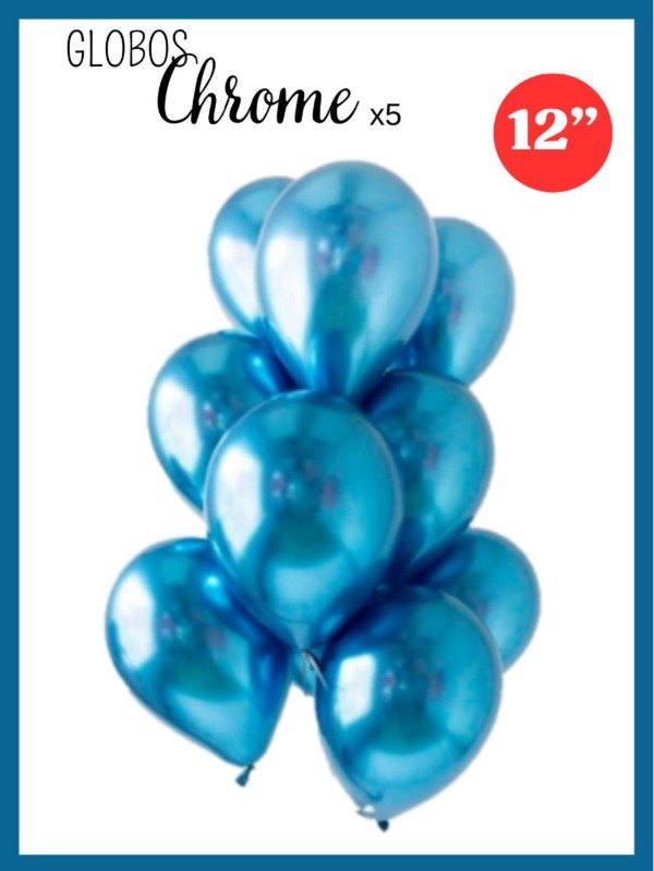 Globos Chrome látex 12" Azul paquete x5 unidades