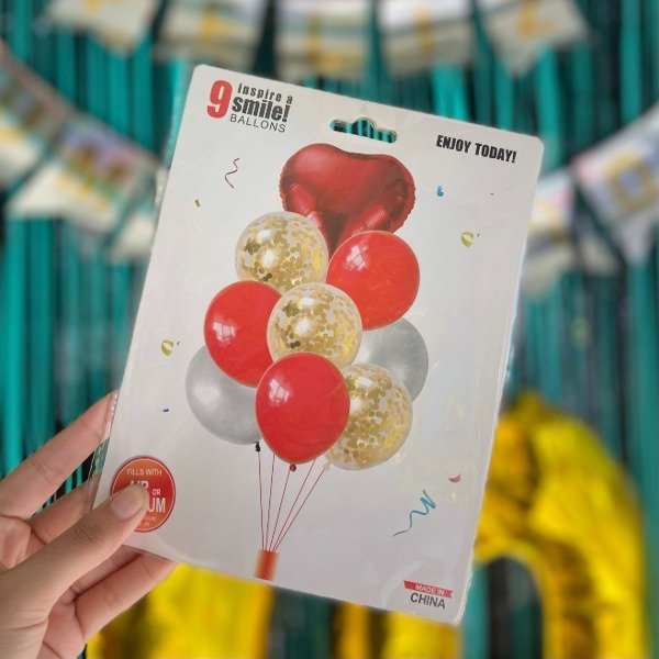 Set de Globos Corazon Rojo Dorado Plateado 9 pcs