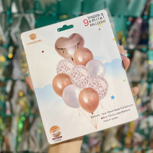 Set de globos Corazón rosa gold 9 pcs