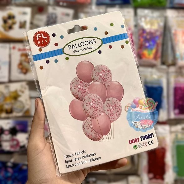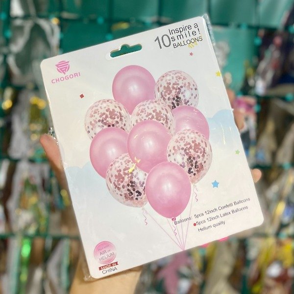 Set de globos Látex perlados y Confeti rosa 10 pcs