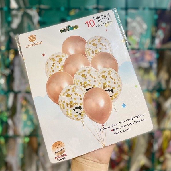 Set de globos Látex perlados y Confeti Rosa Gold 10 pcs